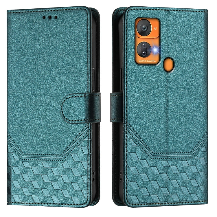 Funda de Cuero Rfid para Teléfono Itel A48 con Relieve en Panal (Verde Pavo Real)