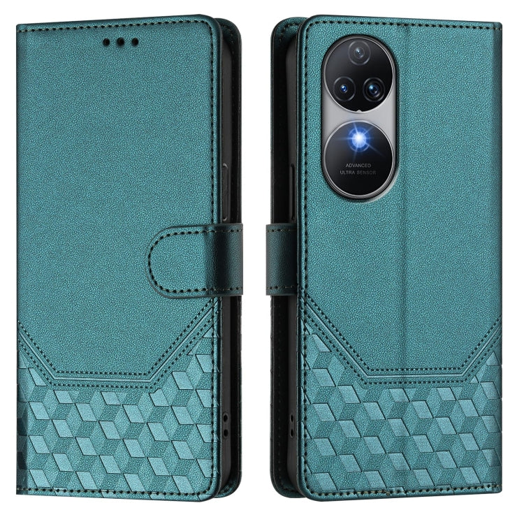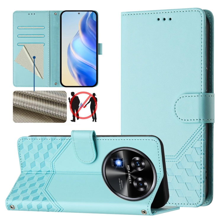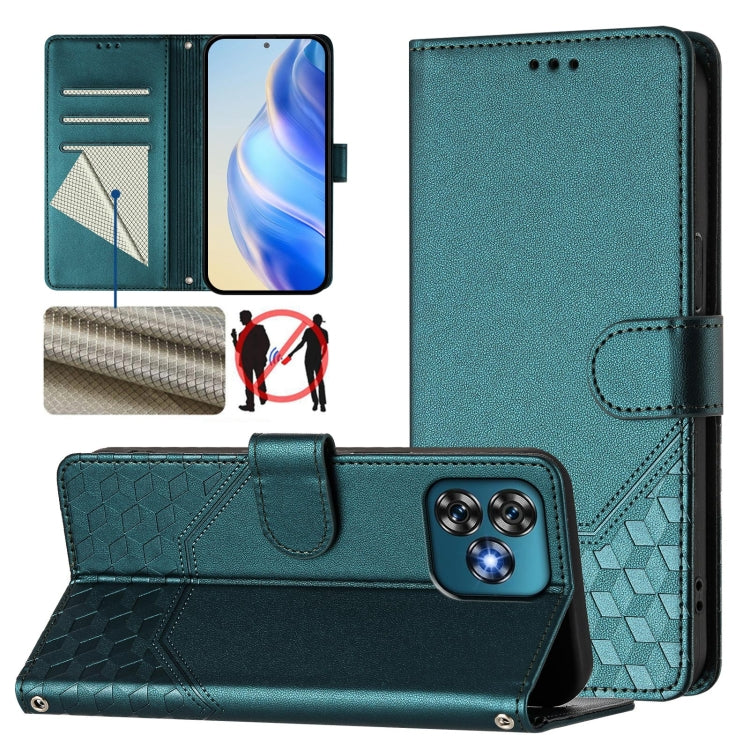 Funda de Cuero Rfid con Relieve en Panal para Oukitel C53 (Verde Pavo Real)