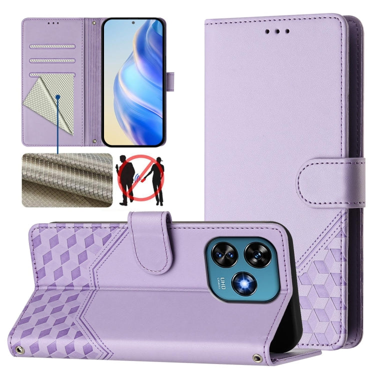 Funda de Cuero Rfid con Relieve en Panal para Teléfono Itel S23 S665L (Morado Claro)