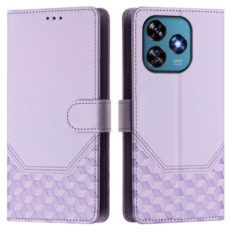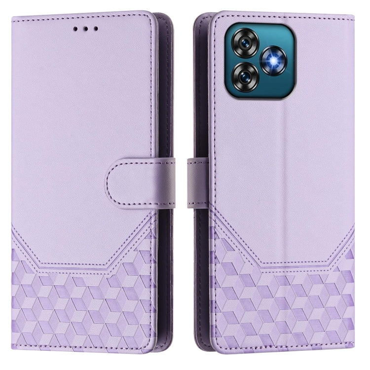 Funda de Cuero Rfid con Relieve en Panal para Oukitel C53 (Morado Claro)