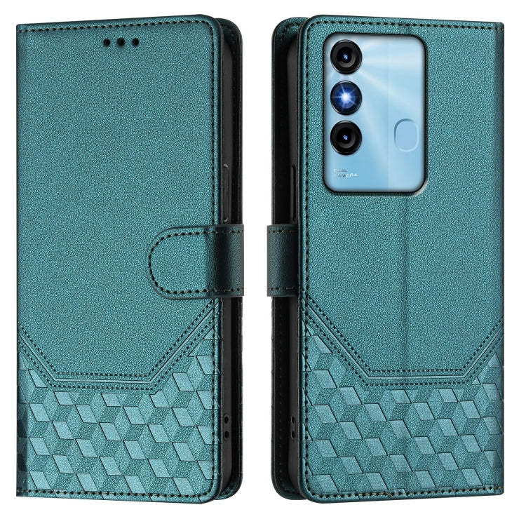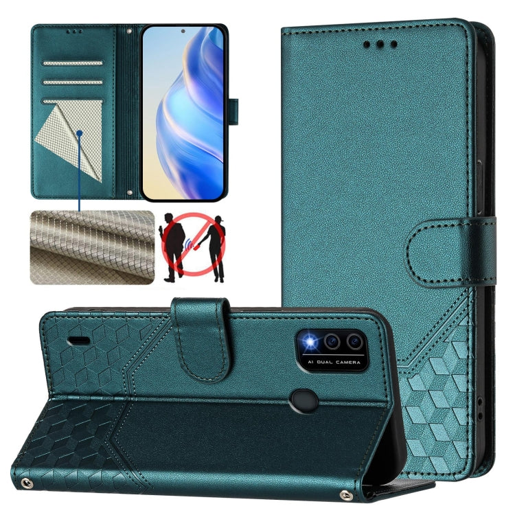 Funda de Cuero Rfid con Relieve en Panal para Teléfono Itel P38 (Verde Pavo Real)