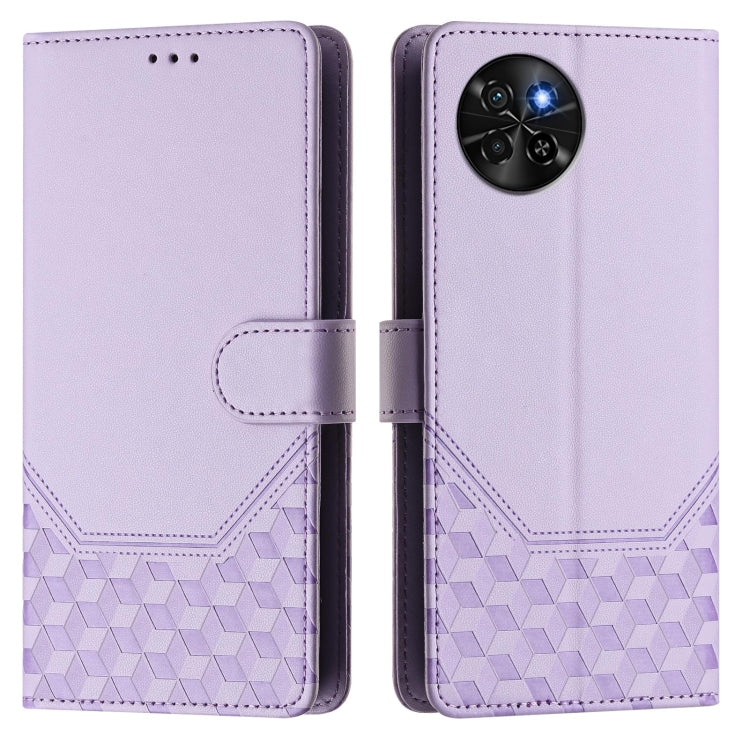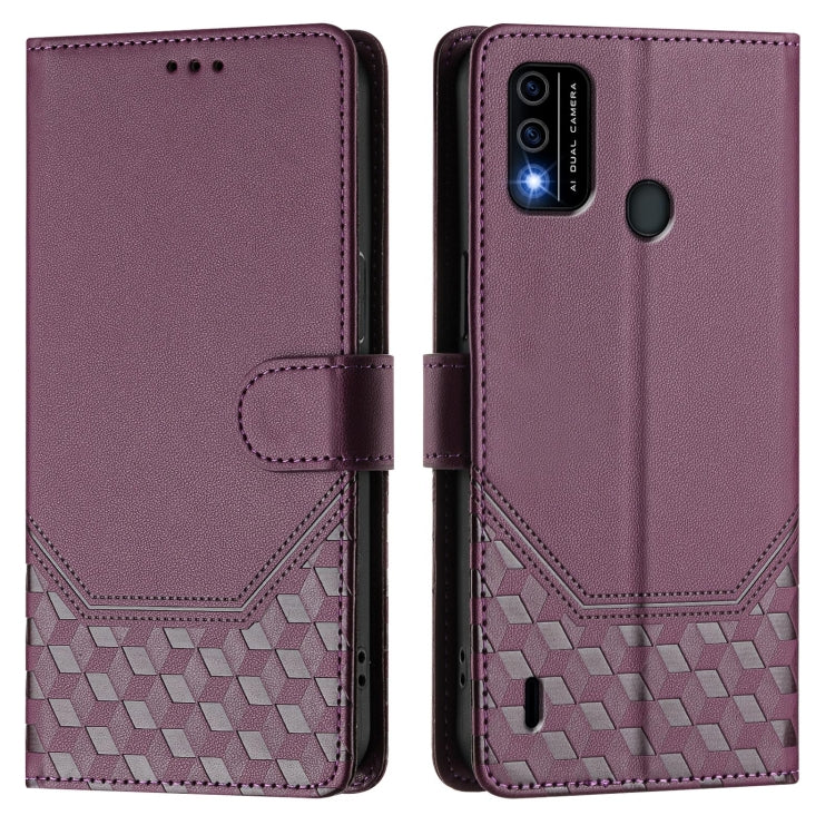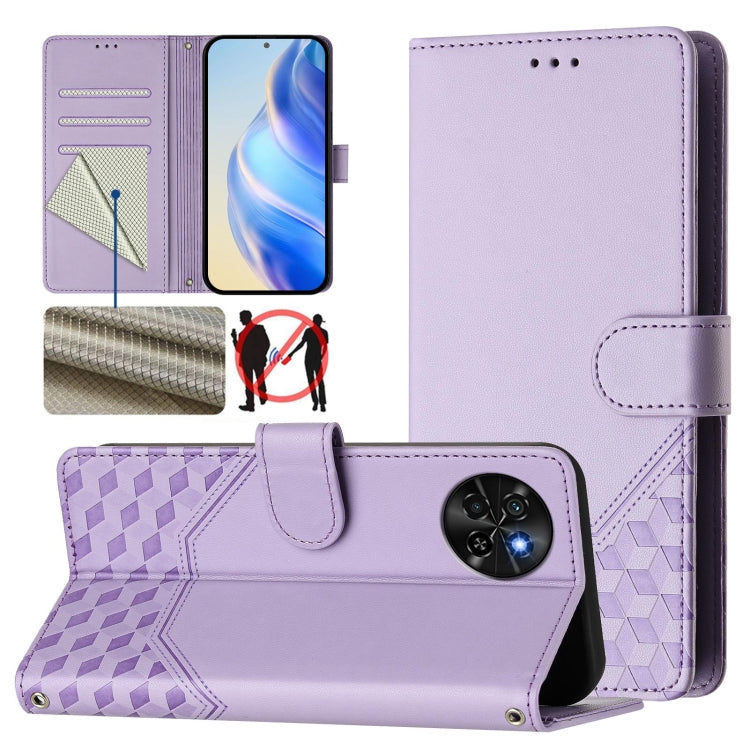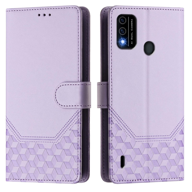 Funda de Cuero Rfid con Relieve en Panal para Teléfono Itel A60/A60S (Morado Claro)