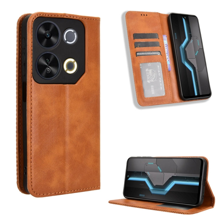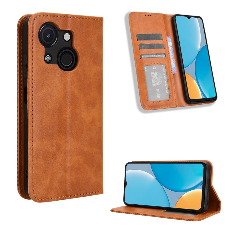 Funda de Cuero Itel P65 4G con Textura Retro y Hebilla Magnética (Marrón)