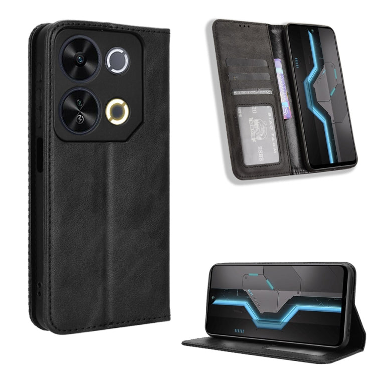Funda de Cuero Itel P65 4G con Textura Retro y Hebilla Magnética (Negro)