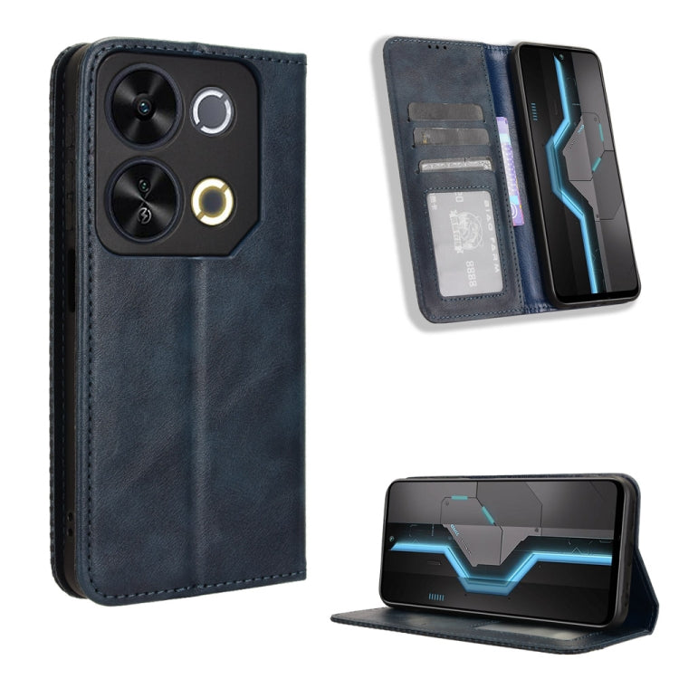 Funda de Cuero Itel P65 4G con Textura Retro y Hebilla Magnética (Azul)