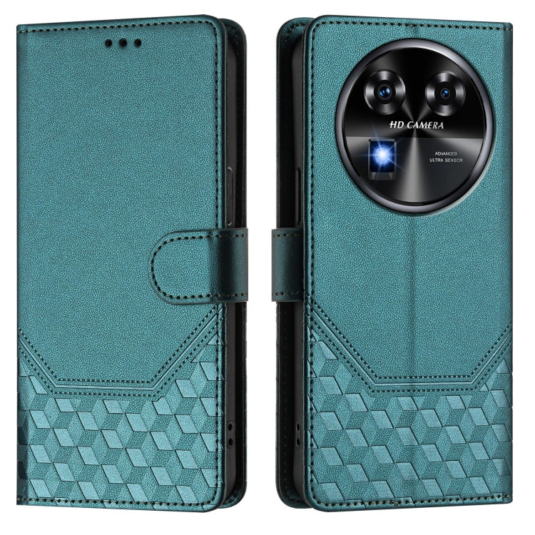 Funda de Cuero Rfid con Relieve en Panal para Oukitel C37 (Verde Pavo Real)
