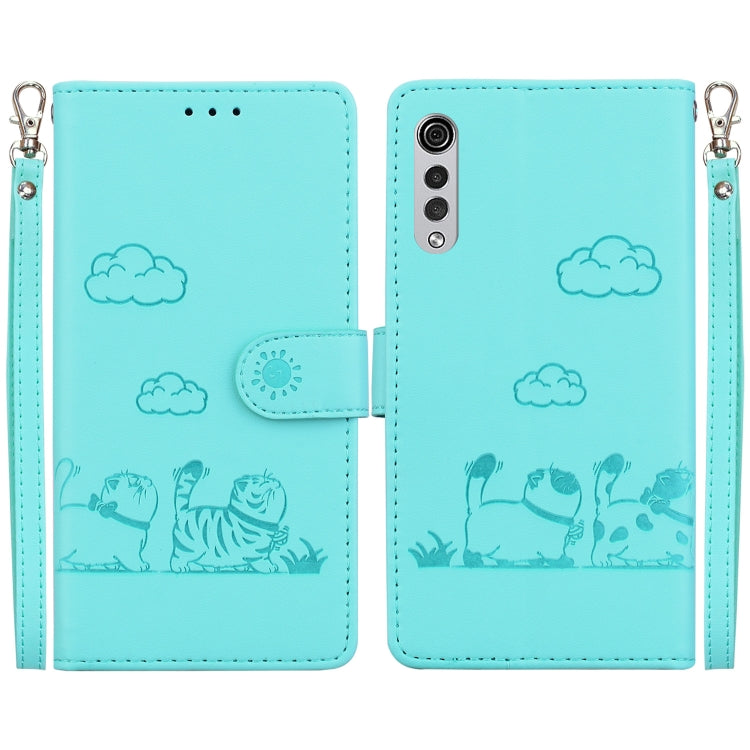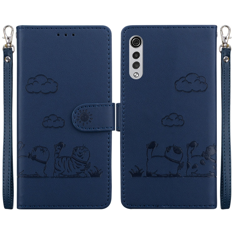 Funda de Cuero Rfid con Diseño de Gatos para LG Velvet/G9 4G/G9 5G (Azul)