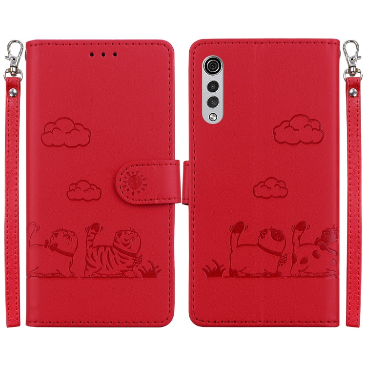 Funda de Cuero Rfid con Diseño de Gatos para LG Velvet/G9 4G/G9 5G (Roja)