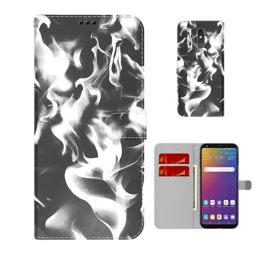 Funda de Cuero para LG K61 Cloud Fog Pattern con Soporte y Ranura para Tarjeta (Negro)