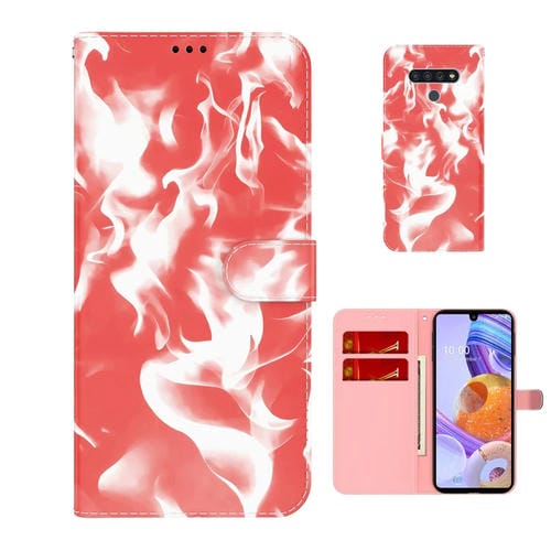 Funda de Cuero para LG K61 Cloud Fog Pattern con Soporte y Ranura para Tarjeta y Billetera (Rojo)