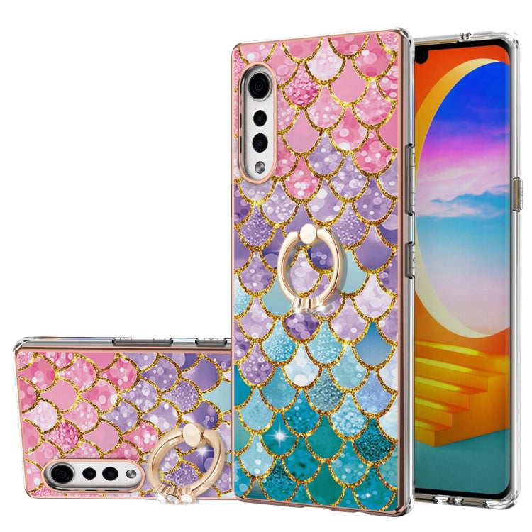 Funda TPU LG Velvet 4G Velvet 5G G9 con Patrón Galvanoplastia y Soporte Anillo (Escamas Coloridas)