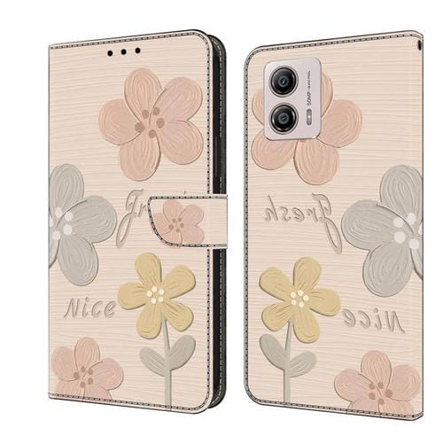 Funda de Cuero Pintada a Mano para Motorola Moto G53 5G (Flores Beige)