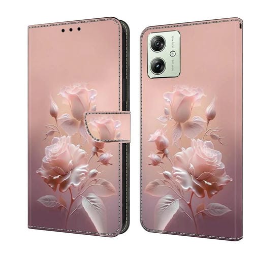 Funda de Cuero pintada a mano para Motorola Moto G Play (2024) (Flores de Cerámica)
