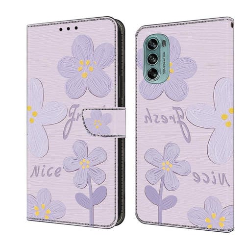 Funda de Cuero pintada a mano para Motorola Moto G52 (Floral Morado)