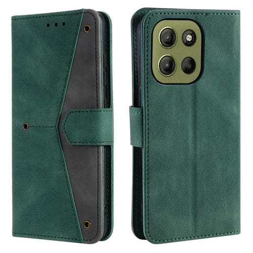 Funda de Piel de Becerro para Motorola Moto G15 (Verde) con Textura y Costuras de Piel de Uña