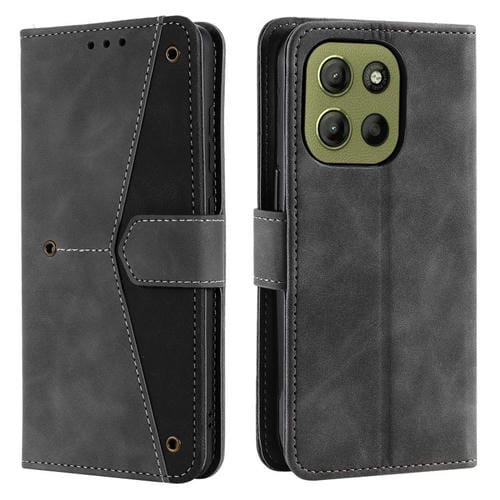 Funda de Piel de Becerro para Motorola Moto G15 (Gris) con Textura y Costuras Efecto Uñas