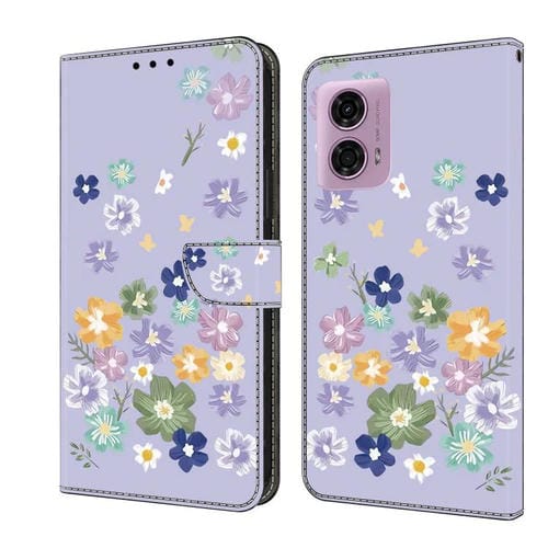 Funda de Cuero Pintada a Mano para Motorola Moto G53 5G (Floral Morado)