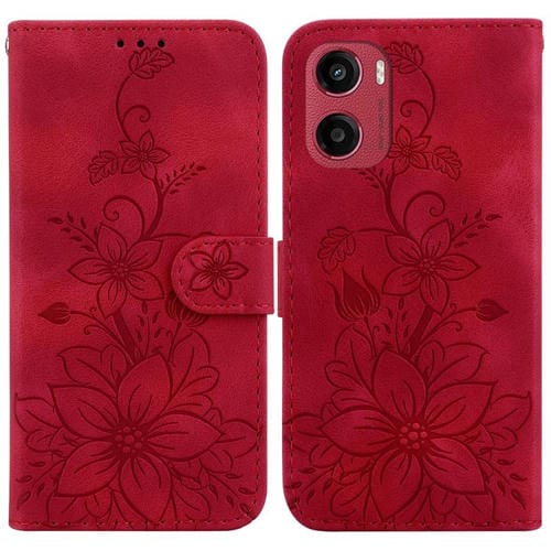 Funda de Cuero con Relieve de Lirio para Motorola Moto G05/E15 (Rojo)