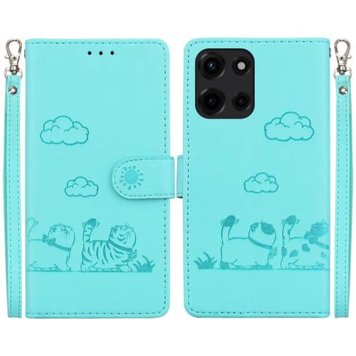 Funda de Cuero con Relieve de Tigre para Motorola Moto G05/E15 (Verde)