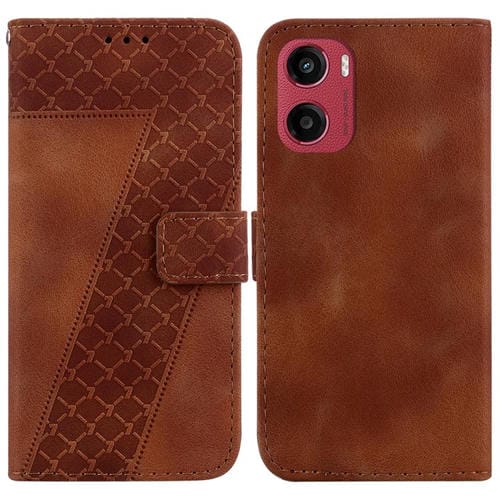 Funda de Cuero con Relieve en Forma de Siete para Motorola Moto G05/E15 (Marrón)