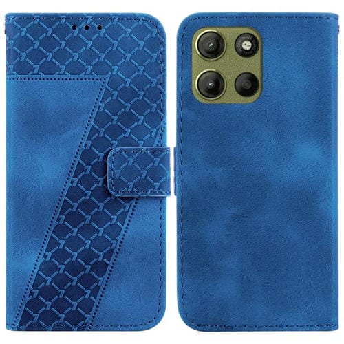 Funda de Cuero con Relieve en Forma de Siete para Motorola Moto G15 (Azul)