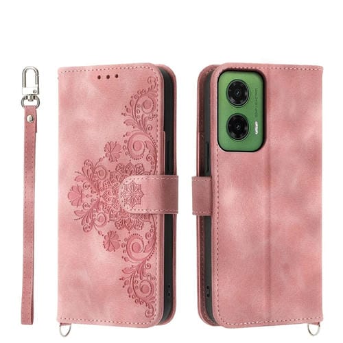 Funda de Cuero con Relieve de Flores para Motorola Moto G75 5G (Rosa)