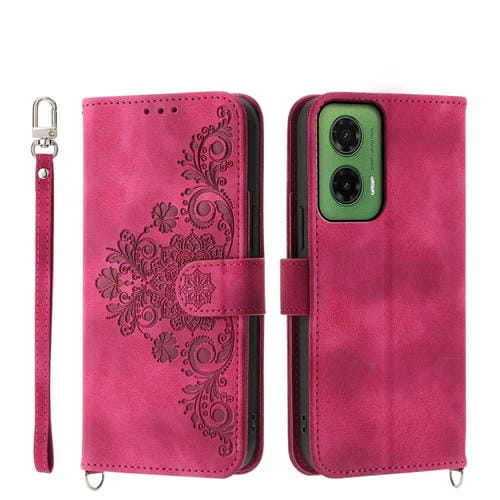 Funda de Cuero Tipo Billetera para Motorola Moto G35 con Diseño Flores en Relieve (Rosa)