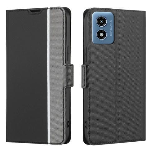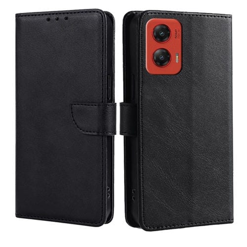 Funda de Cuero con Textura de Sarga y Botones Laterales para Motorola Moto G 5G (2024) (Negro)