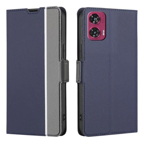 Funda de Cuero con Textura de Sarga y Botones Laterales para Motorola Edge 50 Fusion 5G (Azul)