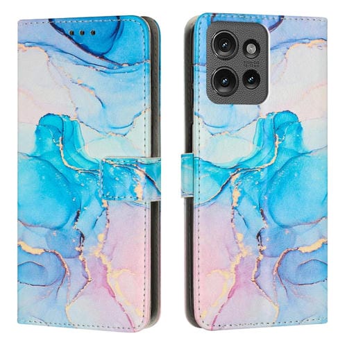 Funda de Cuero con Patrón de Mármol para Motorola Edge 40/Edge 2023 (Azul y Verde)