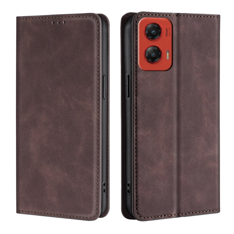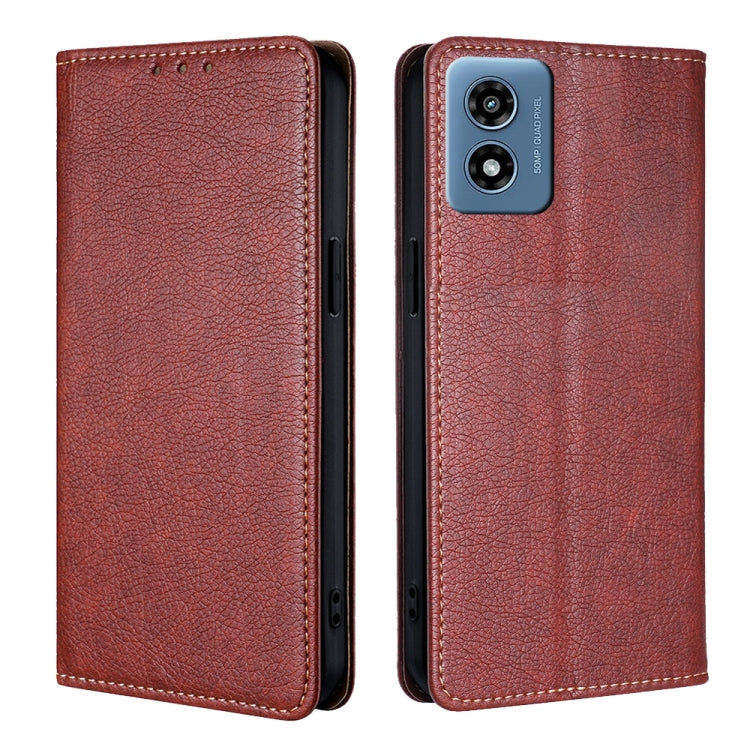 Funda de Cuero Magnética para Motorola Moto G 5G (2024) con Acabado Brillante (Marrón)