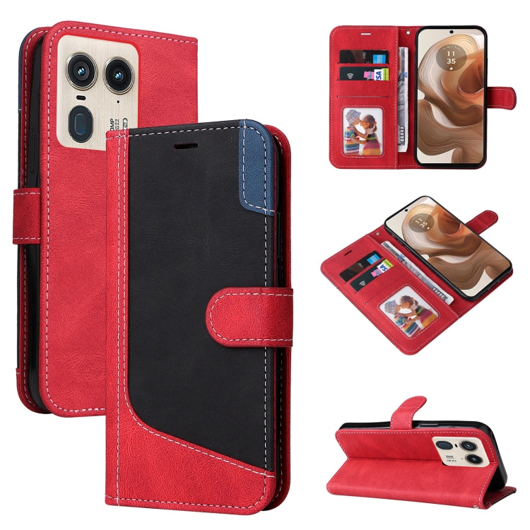 Funda de Cuero para Motorola Moto X50 Ultra con Empalme de Tres Colores (Rojo)