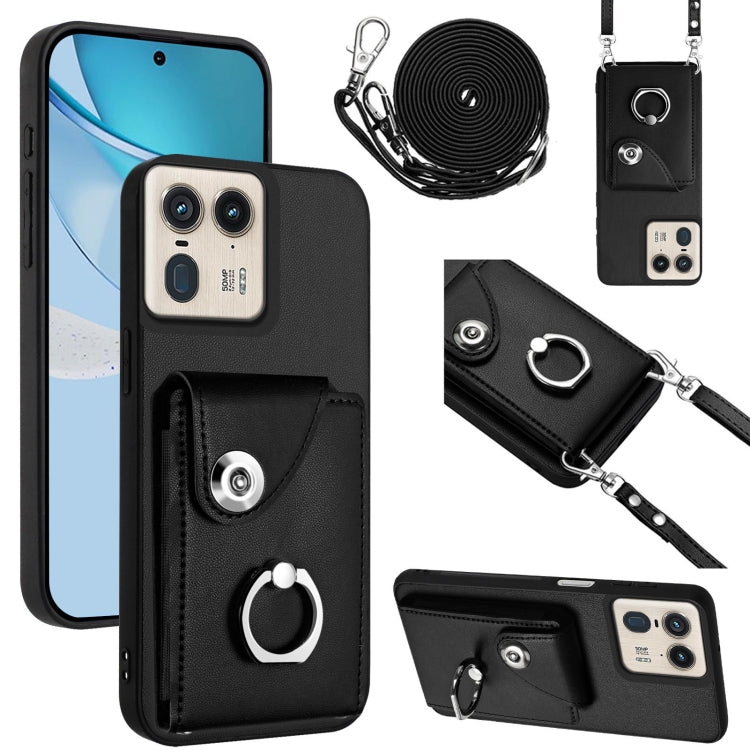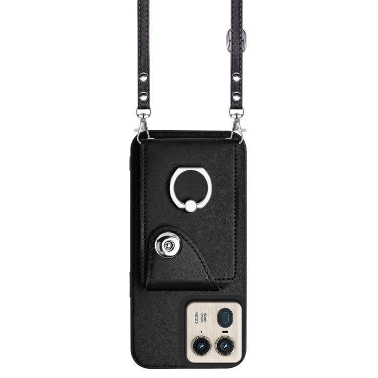 Funda para Teléfono Motorola Moto X50 Ultra con Tarjetero Anillo y Cordón Largo (Negro)