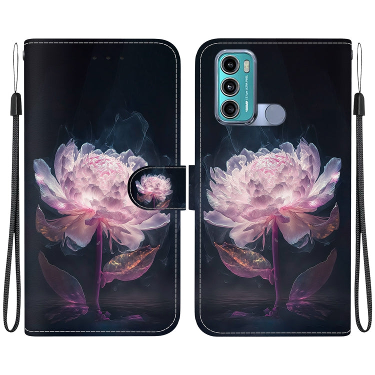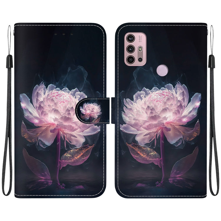 Funda para Motorola Moto G30 G10 G20 de Cuero con Dibujo y Textura de Cristal (Peonía Púrpura)
