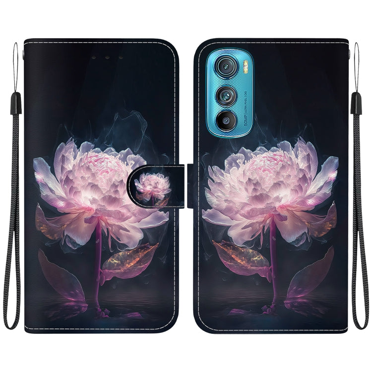 Funda de Cuero para Motorola Edge 30 con Dibujo Coloreado y Textura de Cristal (Peonía Púrpura)