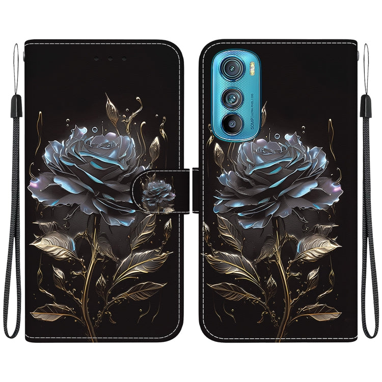 Funda de Cuero para Motorola Edge 30 con Dibujo Coloreado y Textura de Cristal (Rosa Negra)