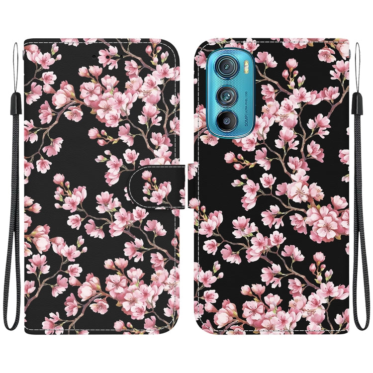 Funda para Motorola Edge 30 de Cuero con Dibujo Coloreado y Textura de Cristal (Flor de Ciruelo)