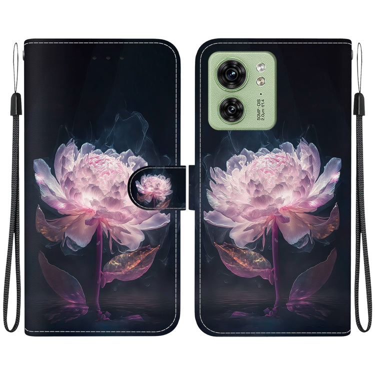 Funda de Cuero para Motorola Edge 40 con Dibujo Coloreado y Textura de Cristal (Peonía Púrpura)