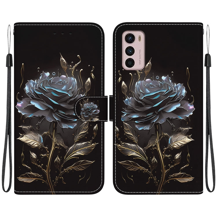 Funda de Cuero para Motorola Moto G42 con Dibujo Coloreado y Textura de Cristal (Rosa Negra)