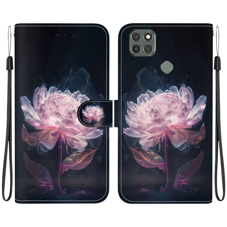 Funda de Cuero para Motorola Moto G9 Power con Dibujo Coloreado Crystal Texture (Peonía Morada)