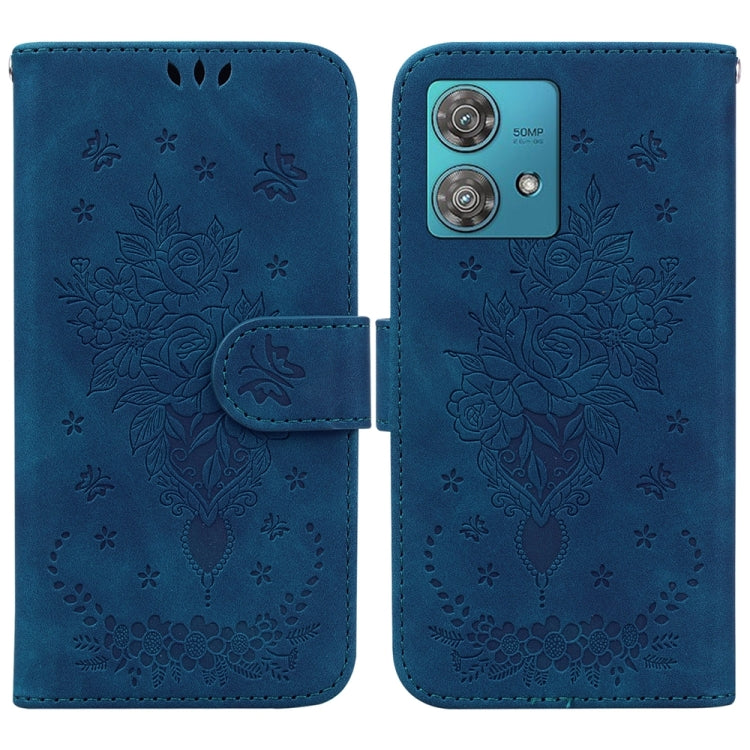 Funda de Cuero para Motorola Edge 40 Neo Butterfly Rose en Relieve (Azul)