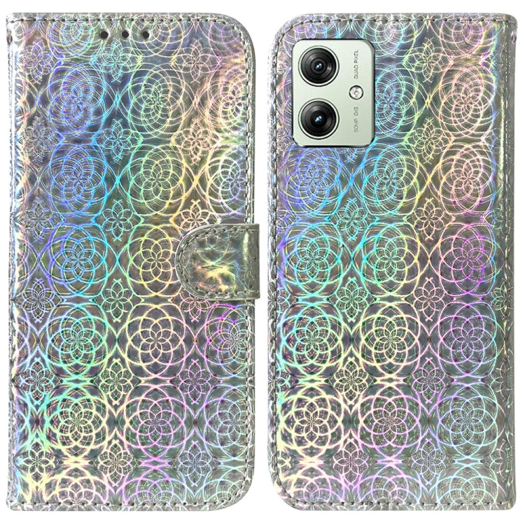 Funda de Cuero para Motorola Moto G54 con Hebilla Magnética Colorida (Plata)