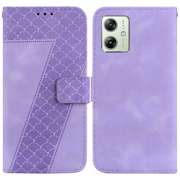 Funda de Cuero para Motorola Moto G54 con Relieve en Forma de 7 (Púrpura)