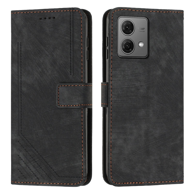 Funda de Cuero para Motorola Moto G54 Skin Feel con Patrón de Rayas y Cordón (Negro)