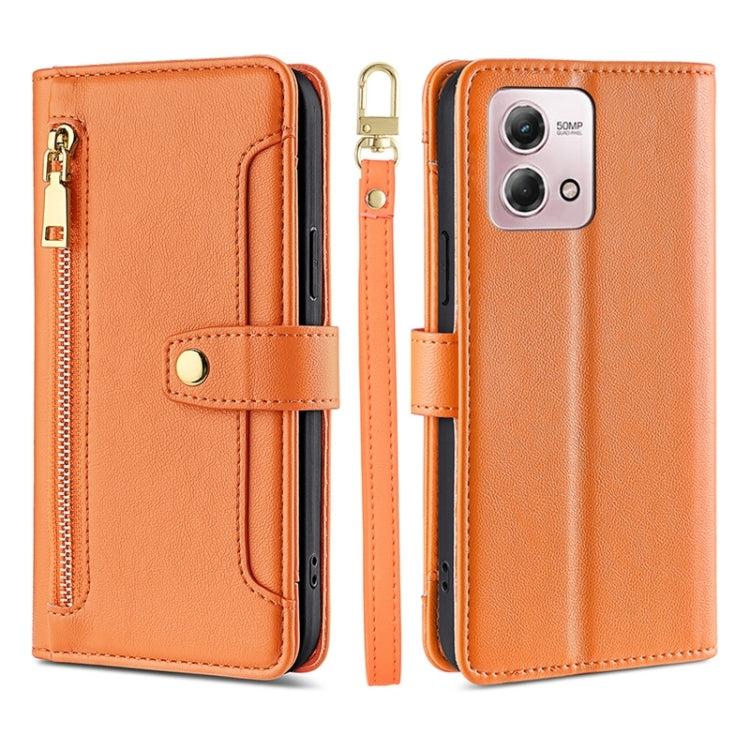 Funda de Cuero para Motorola Moto G84 5G Lite con Billetera y Cremallera (Naranja)
