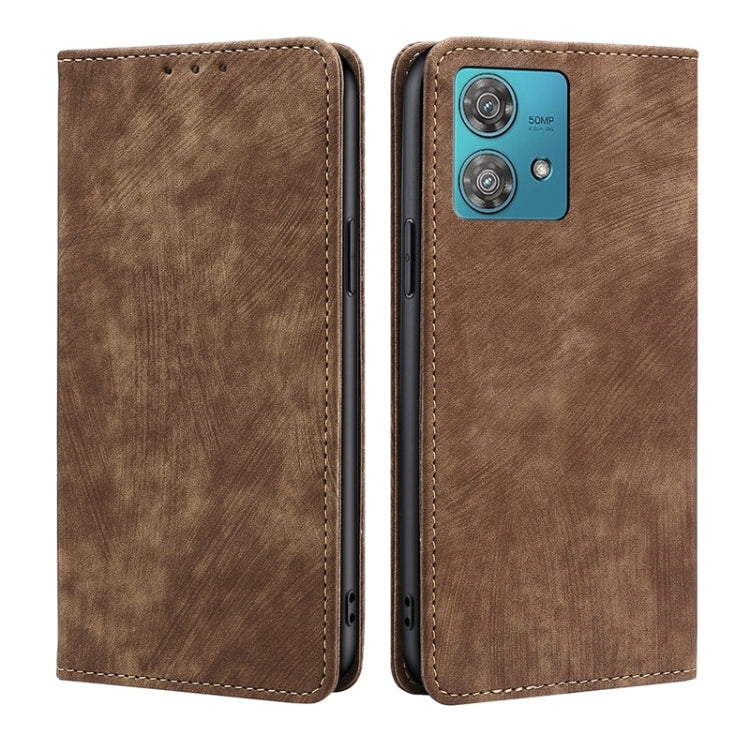 Estuche para Motorola Edge 40 Neo 5G de Cuero Magnético con Rfid y Cepillo Antirrobo (Marrón)