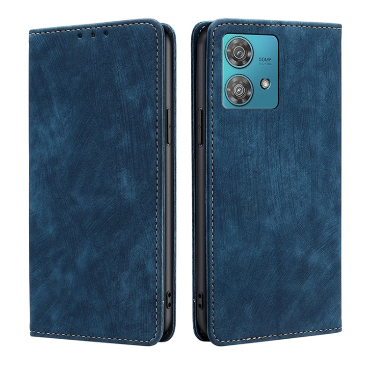 Estuche para Motorola Edge 40 Neo 5G Cuero Magnético con Rfid y Cepillo Antirrobo (Azul)