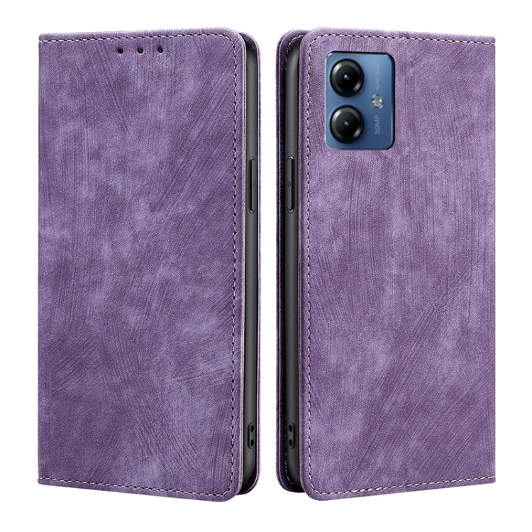Funda para Motorola Moto G14 4G Cuero Magnético con Rfid y Cepillo Antirrobo (Púrpura)