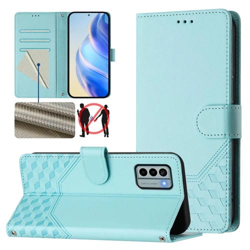 Funda de Cuero RFID con Relieve en Panal para Nokia G20/G10 (Verde Menta)