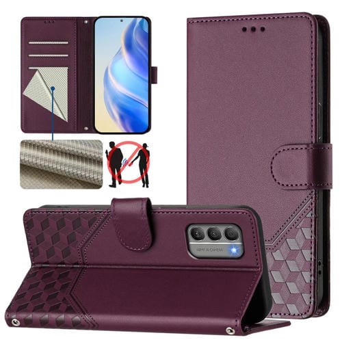 Funda de Cuero Rfid con Relieve en Panal para Nokia G11 4G y G21 4G (Violeta)
